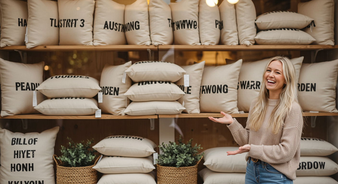 Alyssa showcasing adorable throws in downtown Santa Rosa